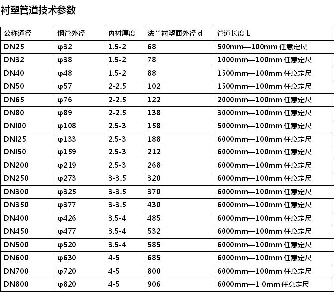 10、衬塑钢管规格系列,配套齐全,适用范围广泛,规格品种齐全。